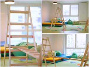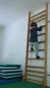 Unser riesiger Tobe- und Schlafraum – vielseitig nutzbar zum Turnen und Klettern, wie für den Mittagsschlaf